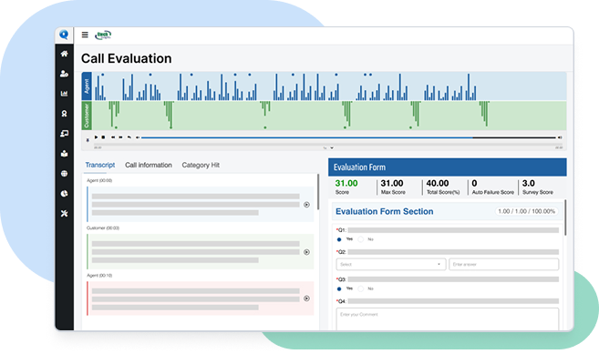 QEval is an intelligent, customizable contact center quality monitoring solution and agent performance management software. It leverages the power of artificial intelligence technology and real-time speech analytics to deliver actionable reports & analytics. QEval further simplifies the coaching process by providing updates on training and ensures better insight and visibility in coaching that goes beyond the antiquated days of simply “checking a box.”