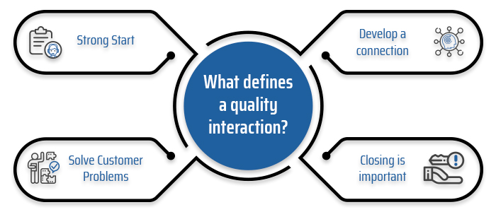 Strong Start – Customers develop their perception based on the first few seconds of their interaction with an agent. The agent needs to use a friendly tone that assures he/she is there to help the customer. If the agent can make the customer comfortable, they will be in a better position to state their problems and ask for a solution.