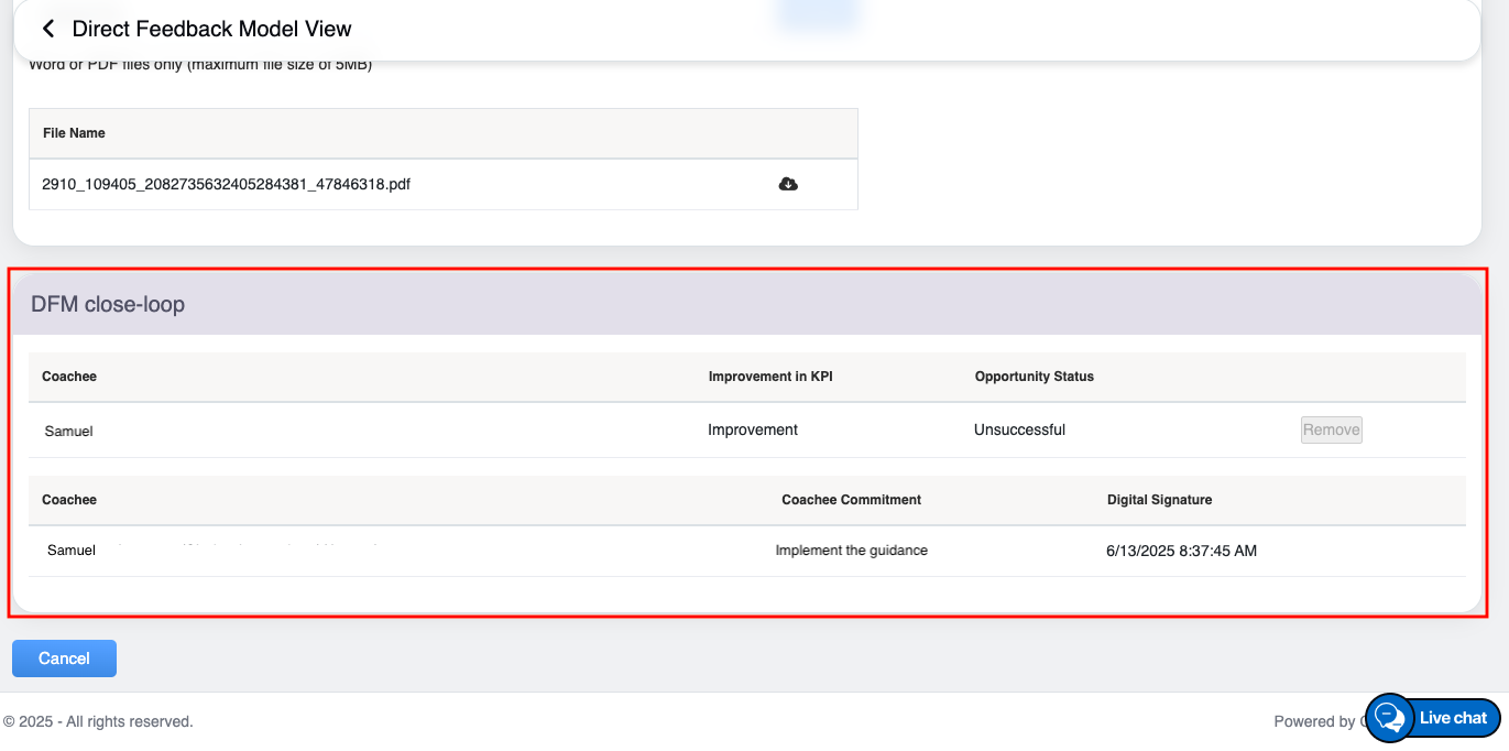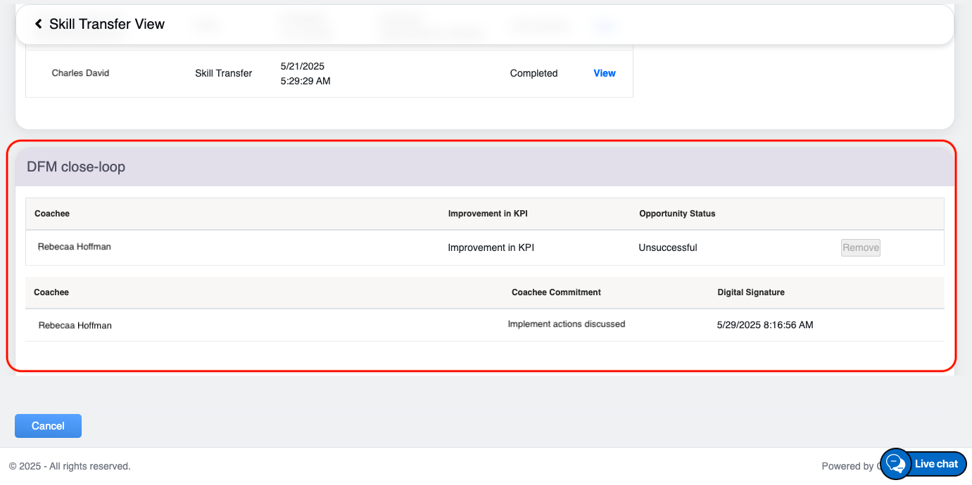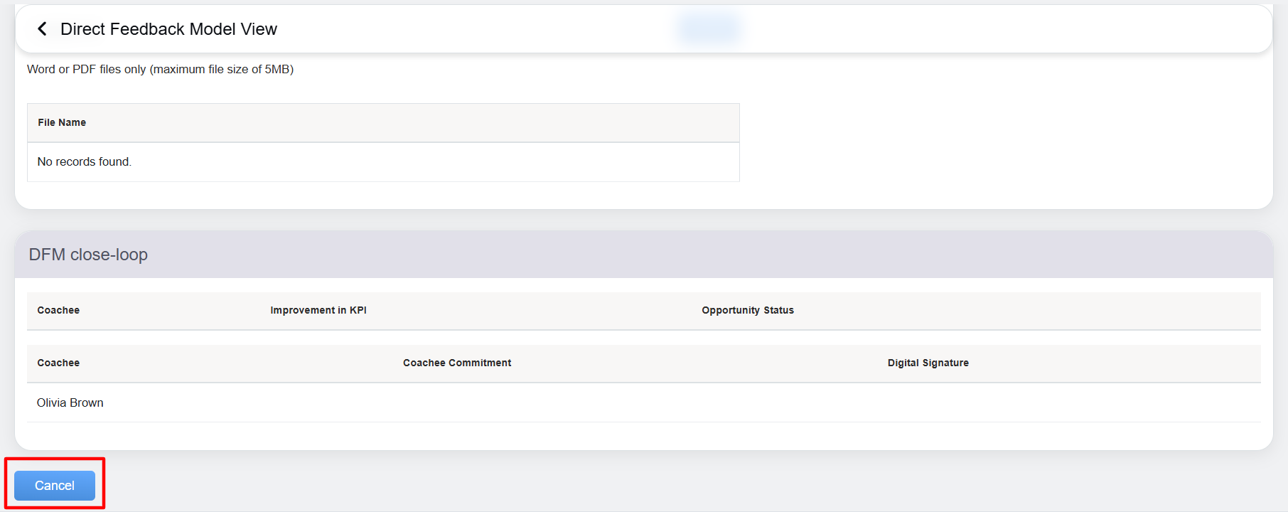 Scroll down on the same page, and click on the Cancel button, to close the configured coaching page –