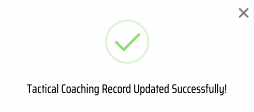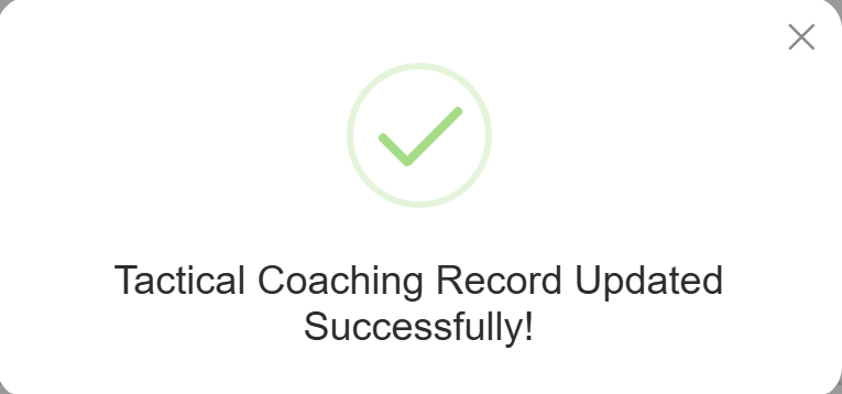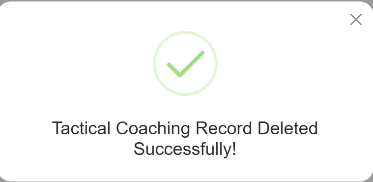 Upon clicking on the Yes button, the confirmation popup will appear indicating that the selected Tactical Coaching Record has been successfully deleted.