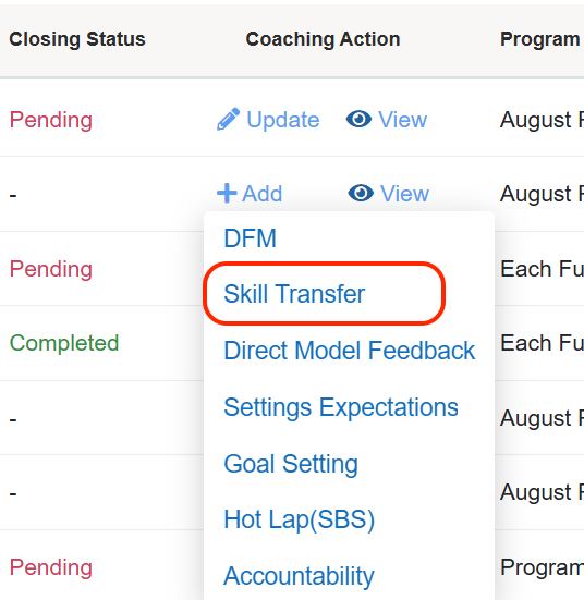 View Coaching Action