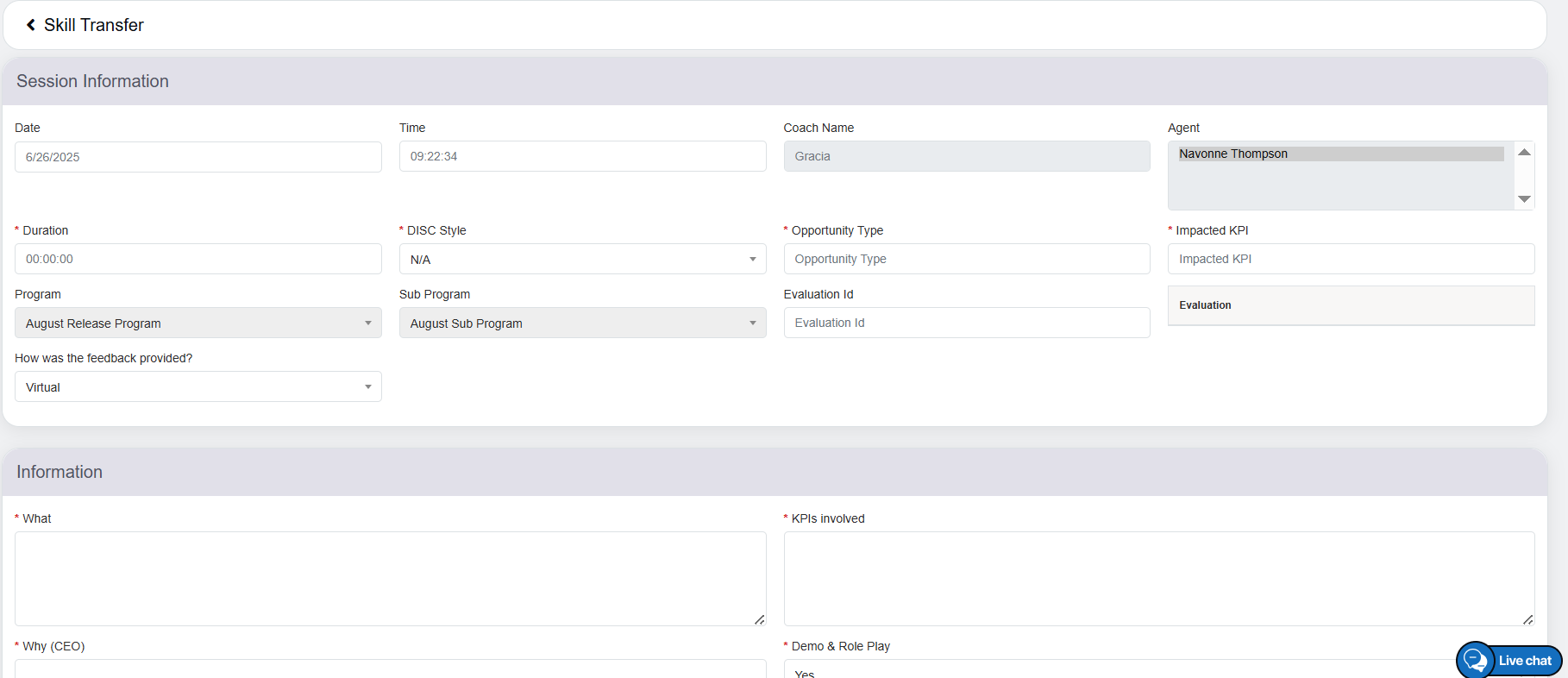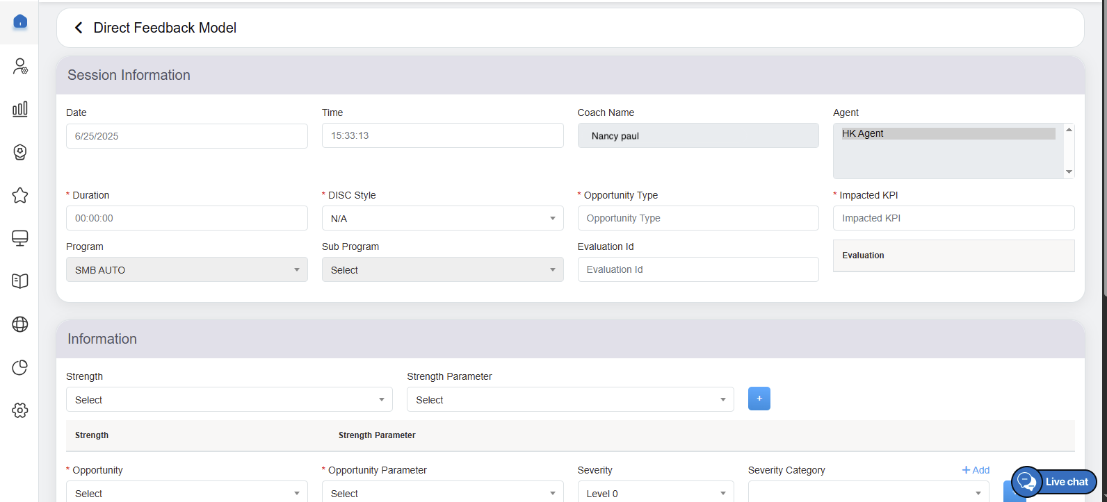 - Agent: Reflects the name of the agent, who is assigned for the specific coaching.