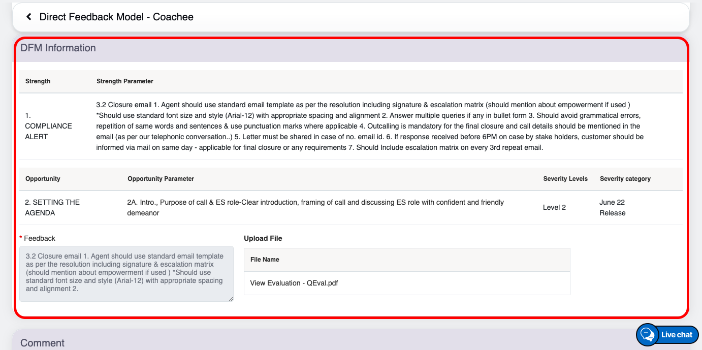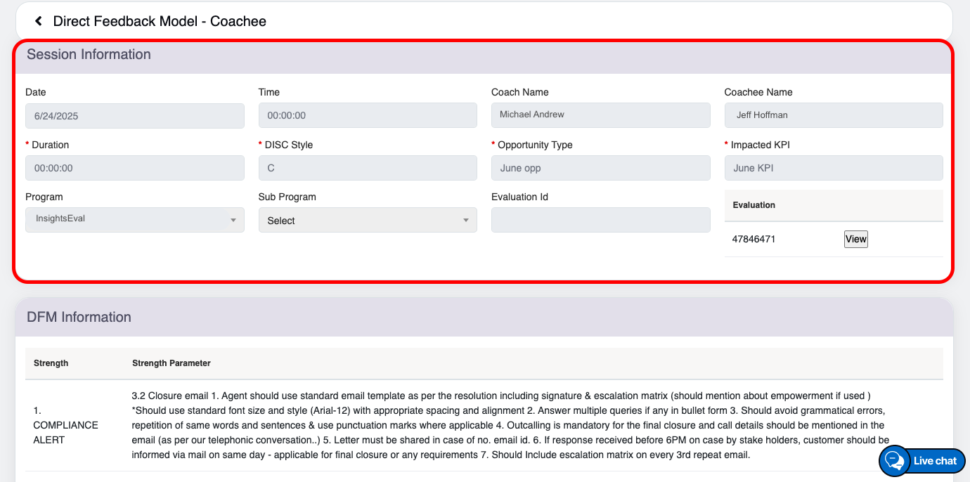 Upon clicking on the View option, to view the configured coaching detailed page as shown in the screen below-