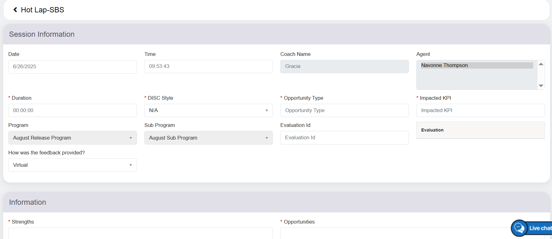 The Hot Lap- SBS refers to a coaching process designed for quick performance reviews or assessments, where short, targeted feedback is provided to enhance skills and behaviors.