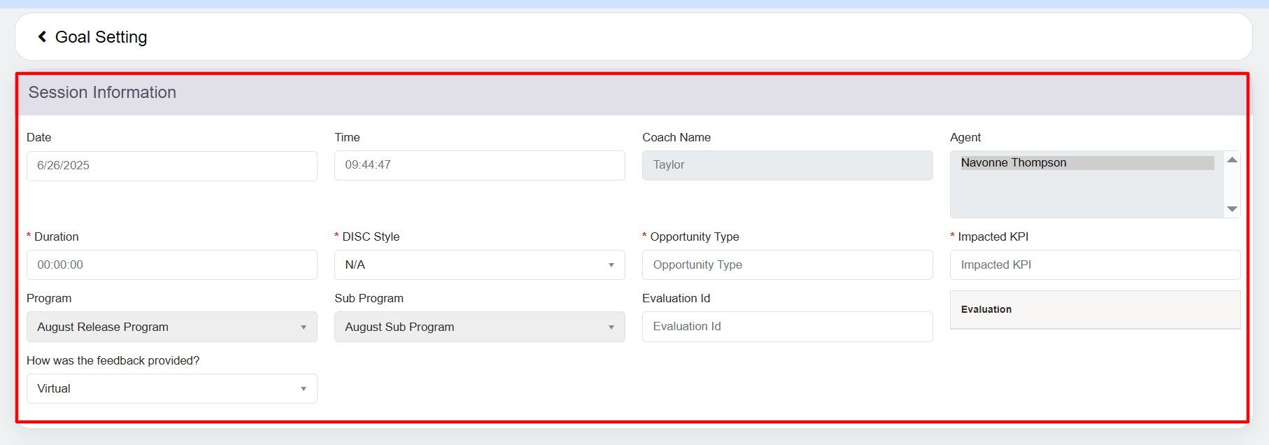 Enter the evaluation ID. Note: Goal Setting can be created without entering Evaluation ID. |