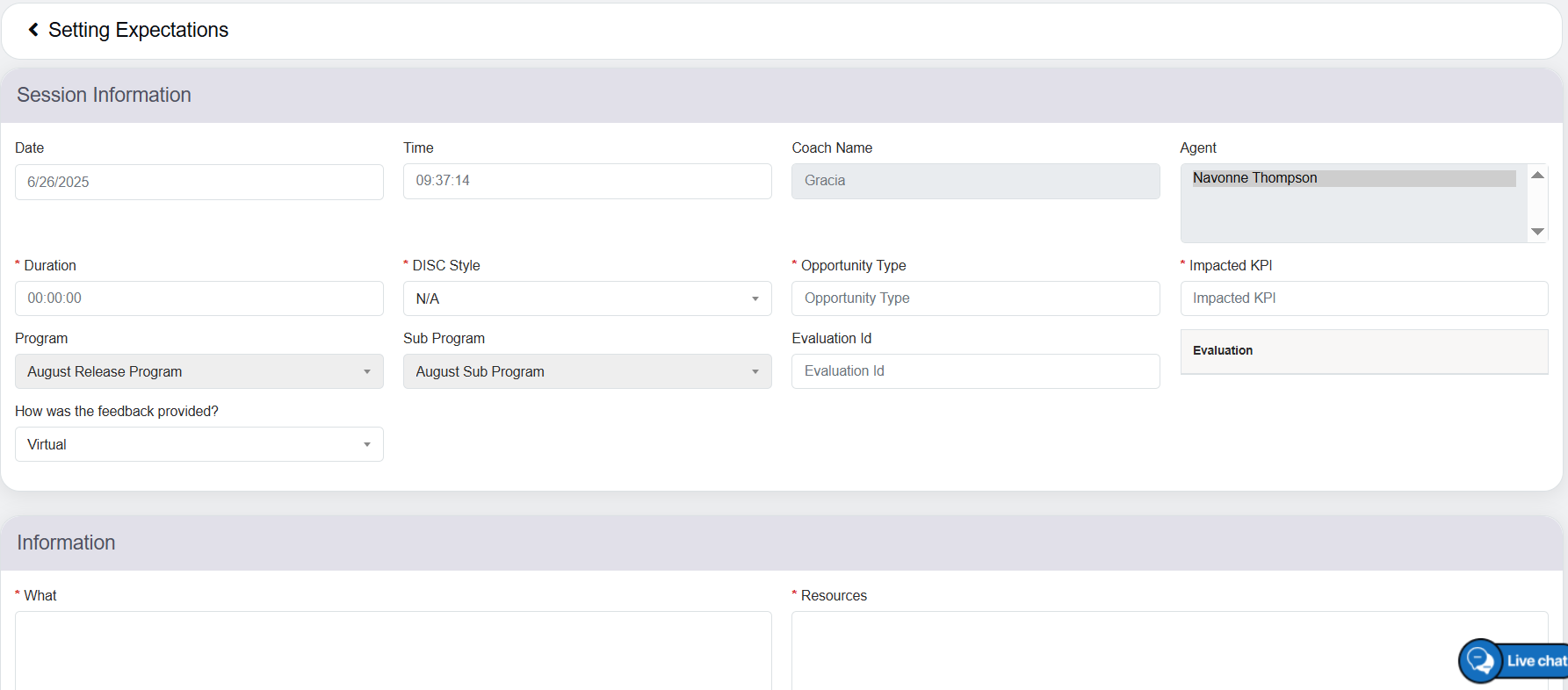 - Follow-up date: Displays scheduled follow-up date, for the coaching session.