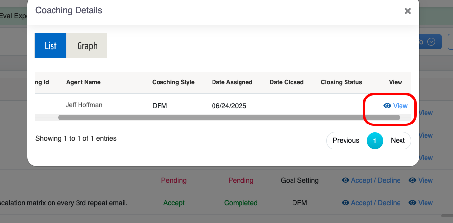 Now scroll right on the same Coaching Details pop-up window, and click on the View clickable option as displayed-