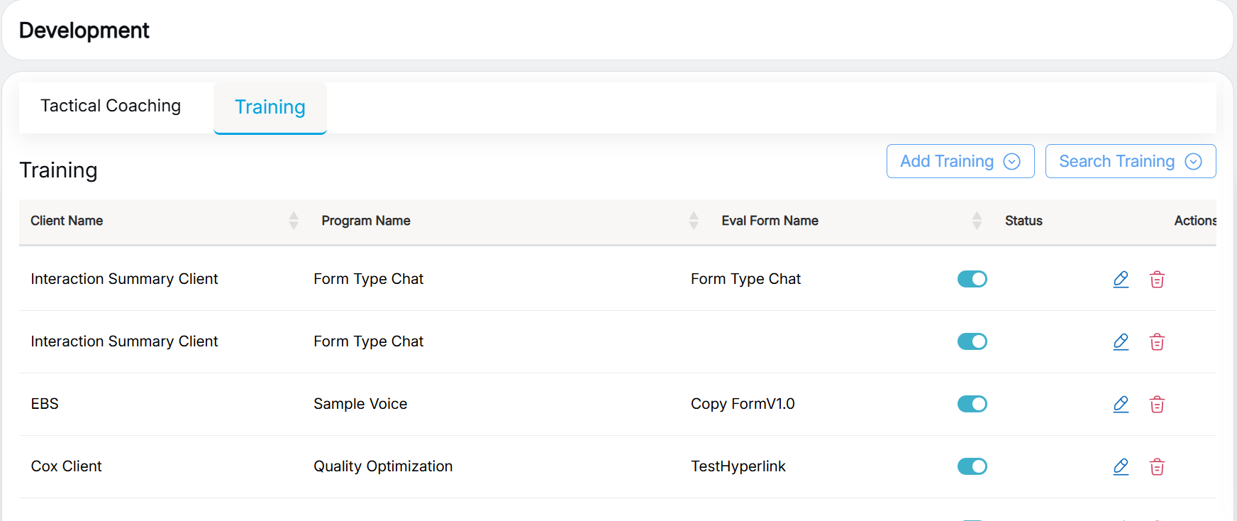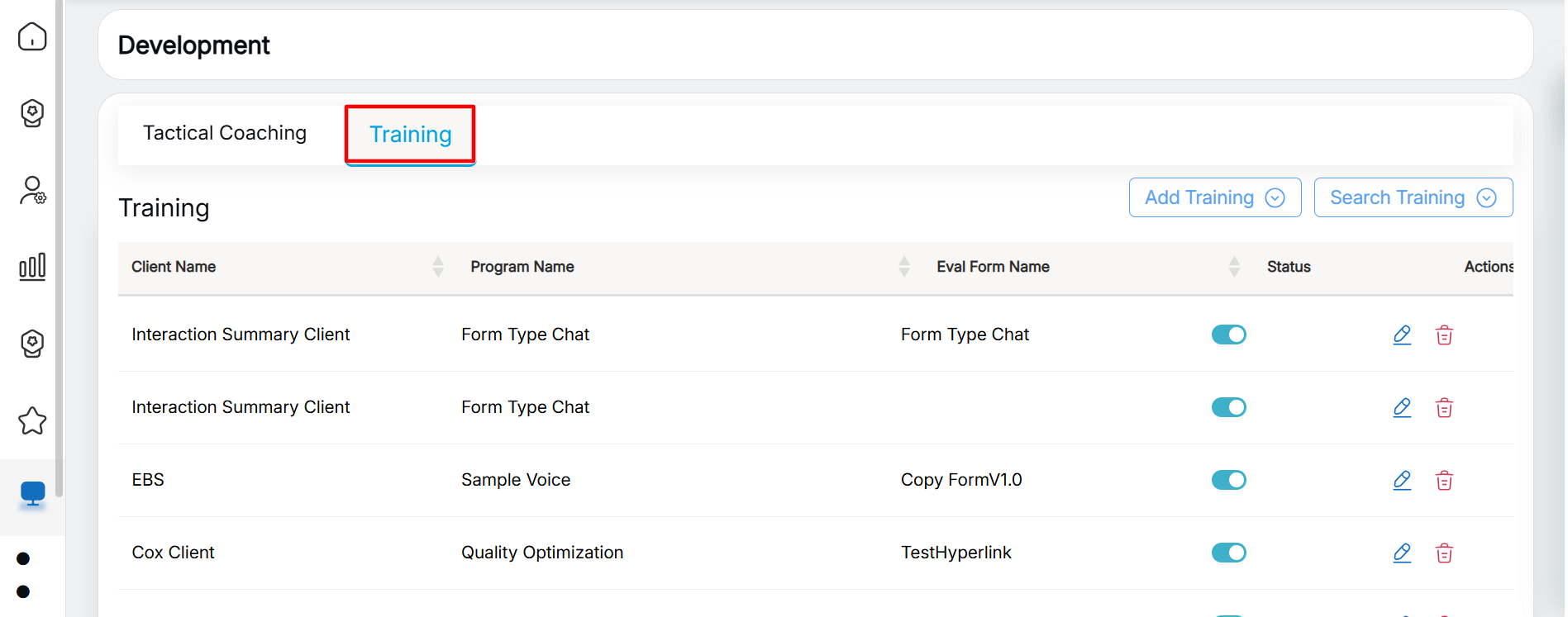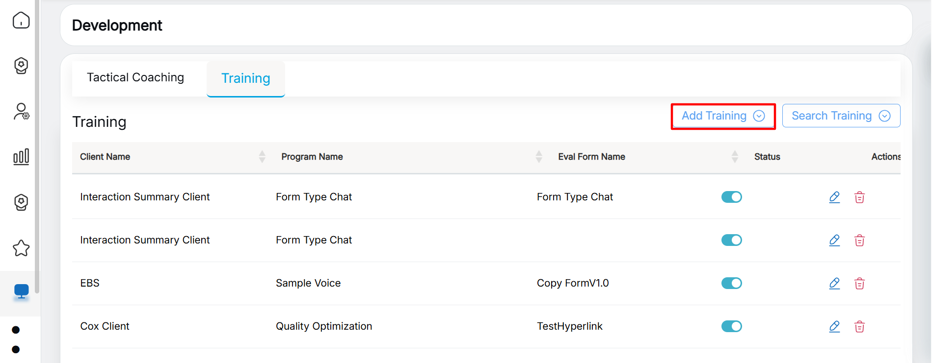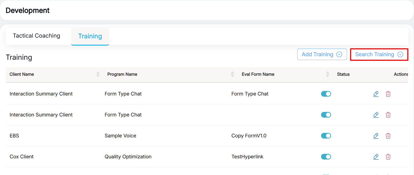 An Admin can manage the training module from Admin console by adding, searching, editing, and deleting the training.