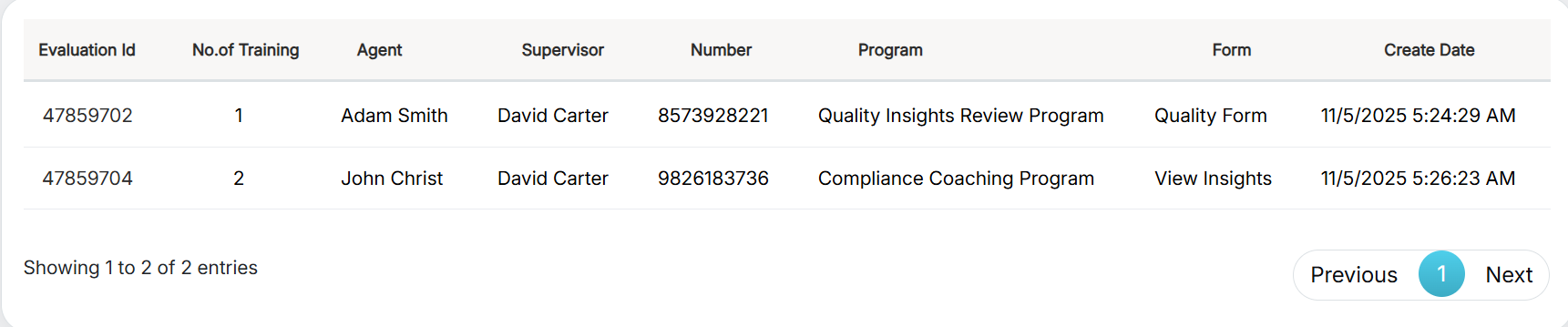 The supervisor will be able to review the training progress of the agent from the evaluation form.