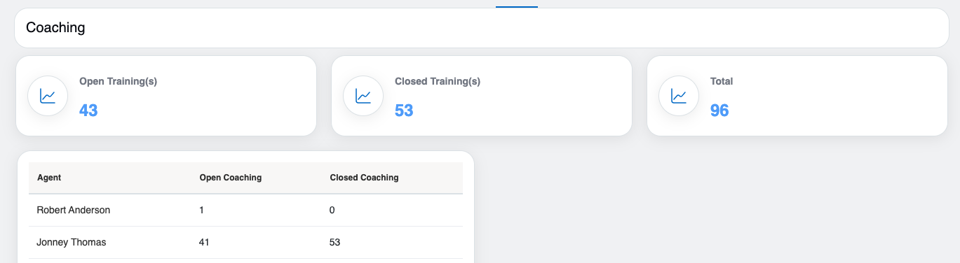- Total: It displays the total number of training (sum of open and closed coaching) assigned to the agents.