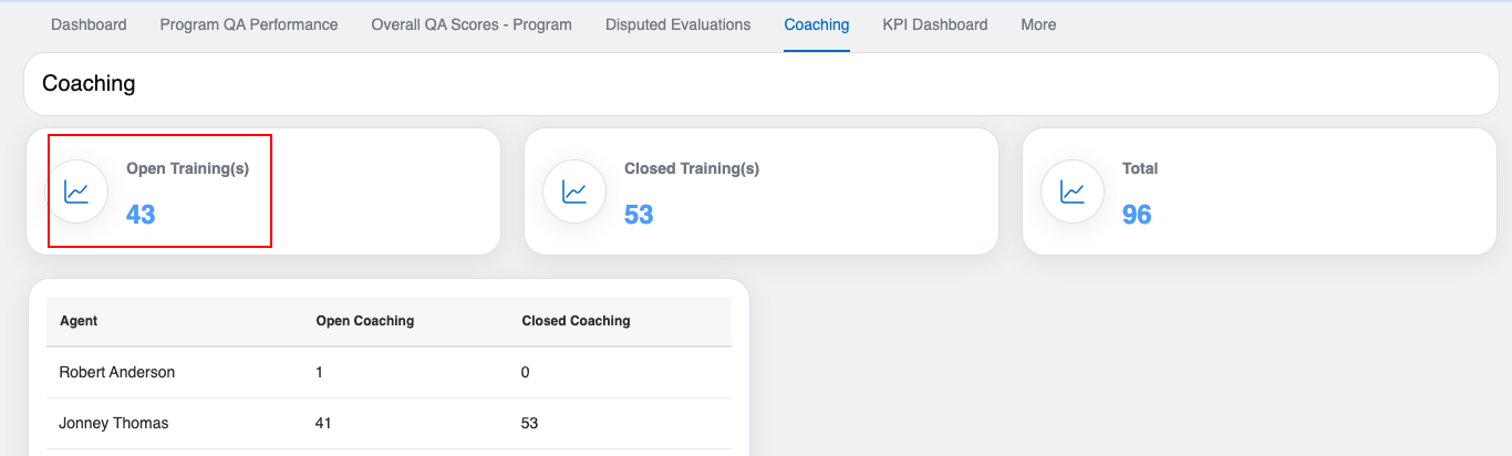 - Open Training: It displays the number of pending coaching to be completed by the agents.