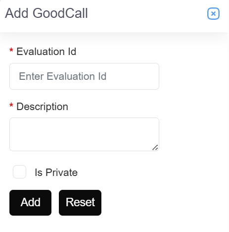 - Evaluation ID: Enter the evaluation ID of the call which needs to be added to the Good Call Library.