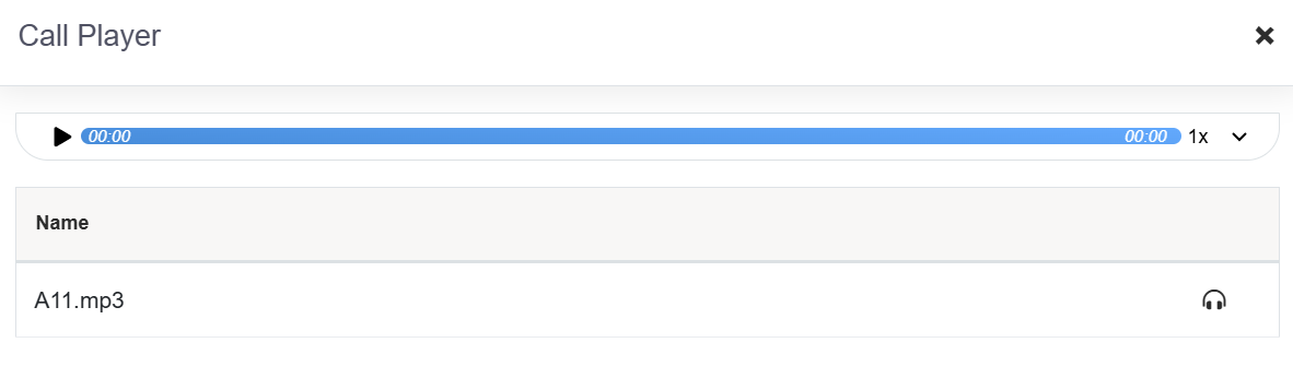 Then the system will display a call player window on the same console with the name of the call recording file and can listen to the recording as shown below: