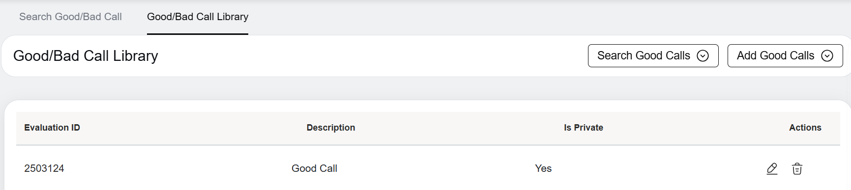 The newly added good/bad call will be displayed on the list on the Good/Bad Call Library page.