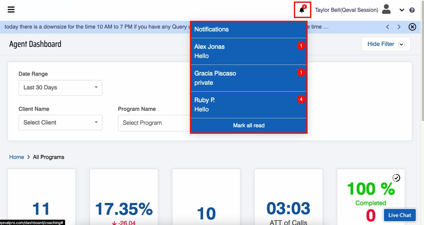 When users log into the system, they will be promptly notified about important categories – Pending Evaluation, Pending Coaching and Open Disputes. These notifications will be intelligently tailored to the access rights of the individual user, ensuring that they only receive relevant and actionable information. This personalized approach guarantees that each user is informed about tasks and responsibilities that are pertinent to their role within the system.