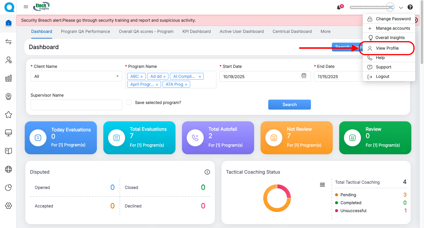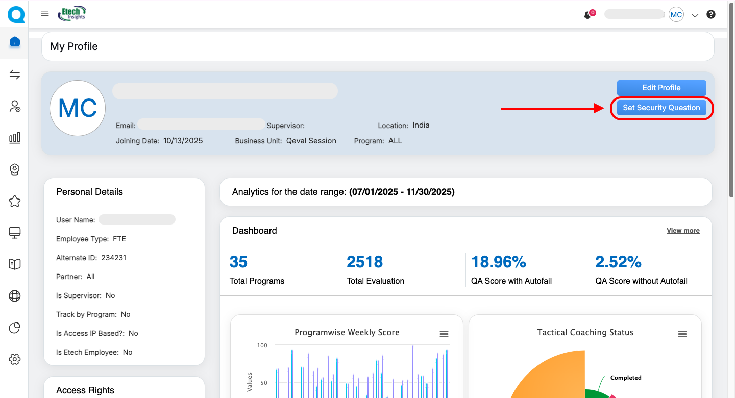 To enhance account security, users can set or update their Security Questions from their profile.