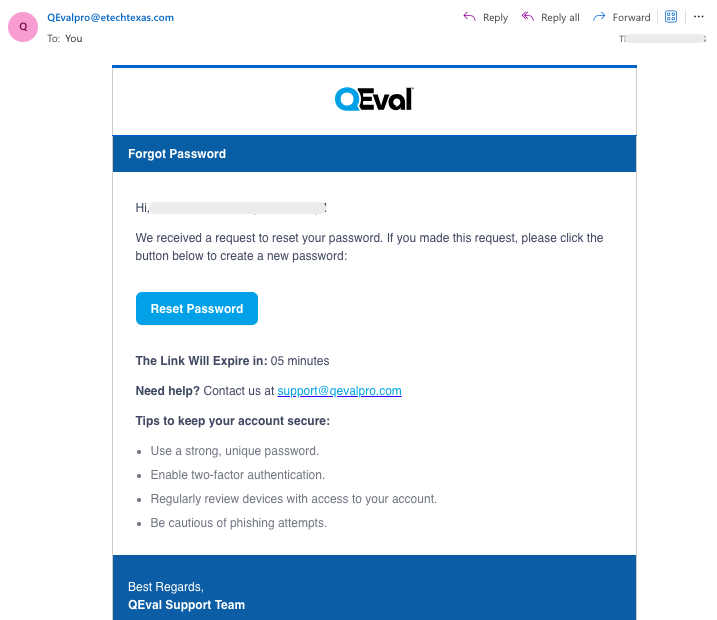 You will be securely logged into your QEval account.