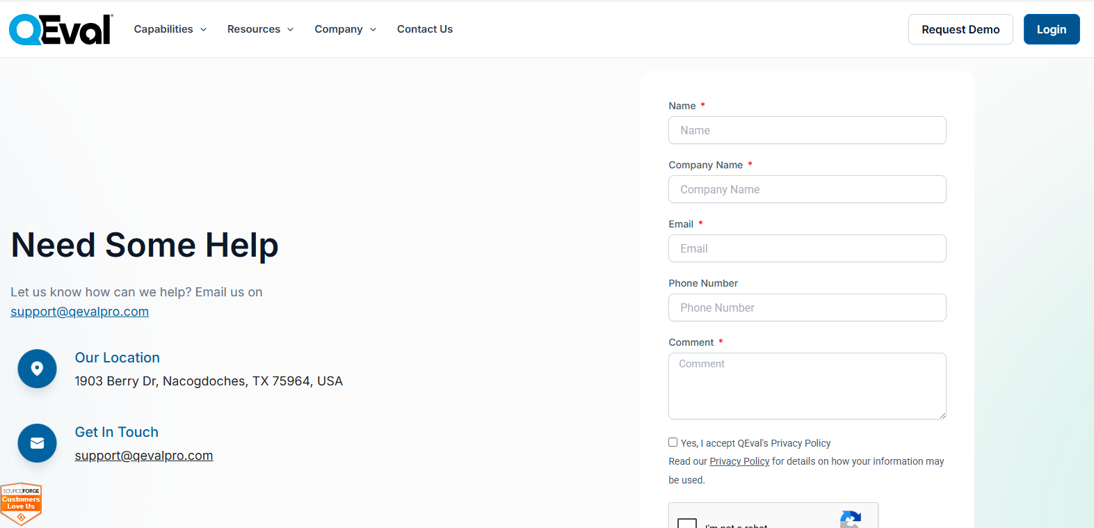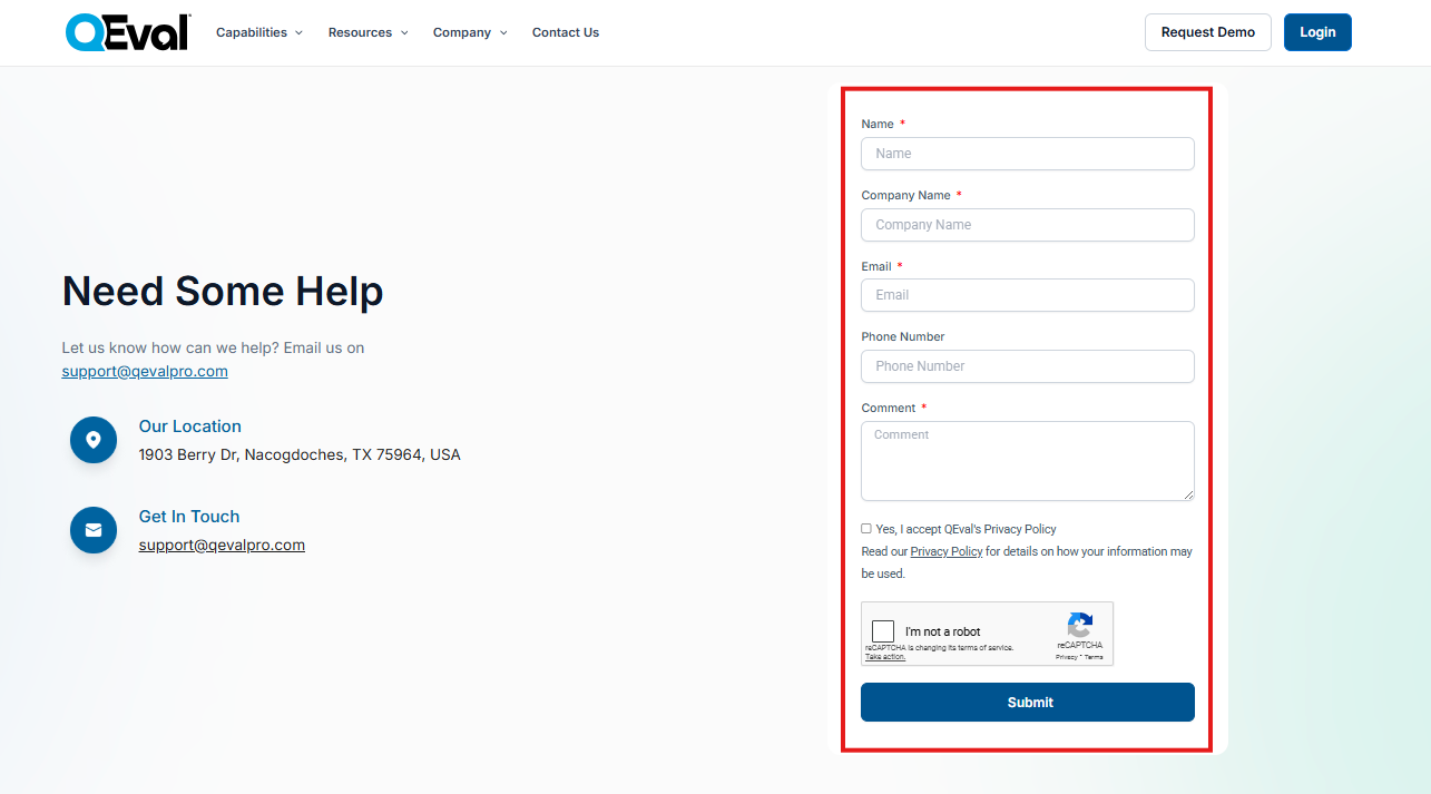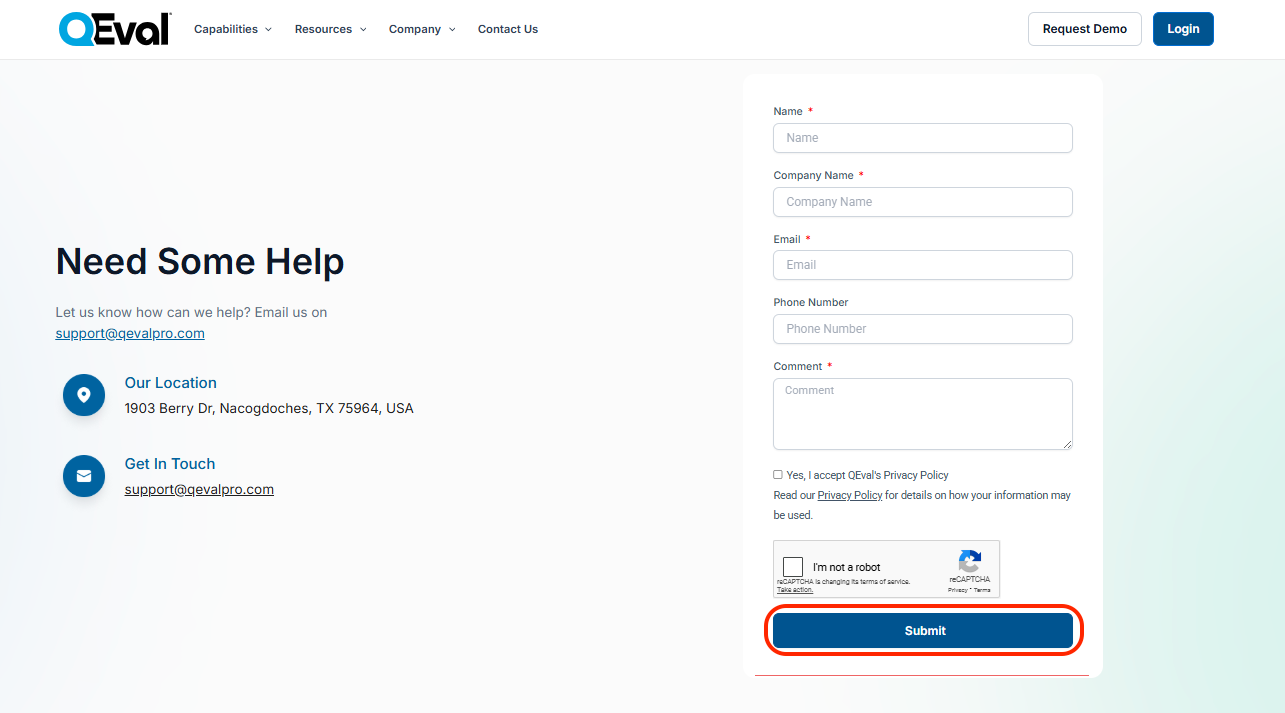 To get support from the QEval team, a user needs to enter the details in the fields displayed in the following screen: