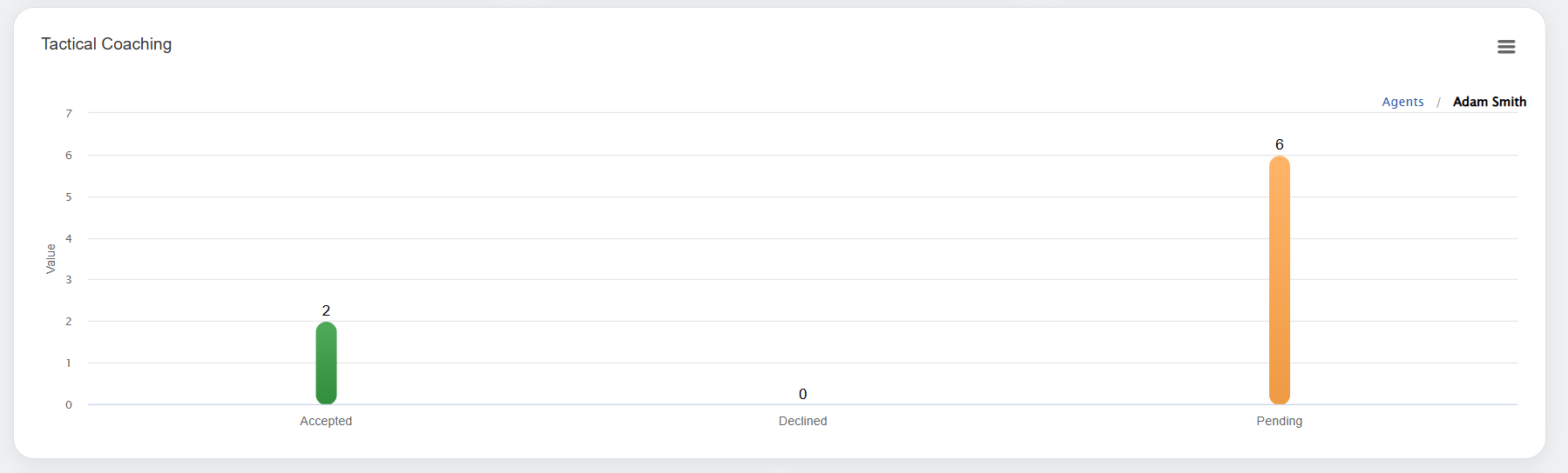 Tactical coaching graphs assist the logged-in user to access the comprehensive agent-level coaching data. These statistics are displayed in the Bar Chart format as shown below: