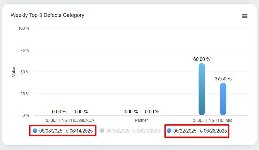 On the Overall QA Score page, the VP will be able to view the data of the QA scores – Week Wise, Center Wise, Category Wise, and Weekly Top 3 Defects Category.