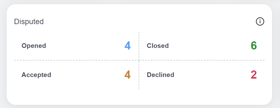 Displays the total number of disputes in the following states: