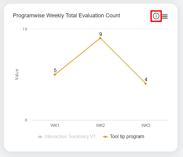 In this window, the date range of each week will be displayed for which the data is displayed for the Programwise Weekly Total Evaluation Count and Programwise Weekly Autofail Count in the Line Chart format.
