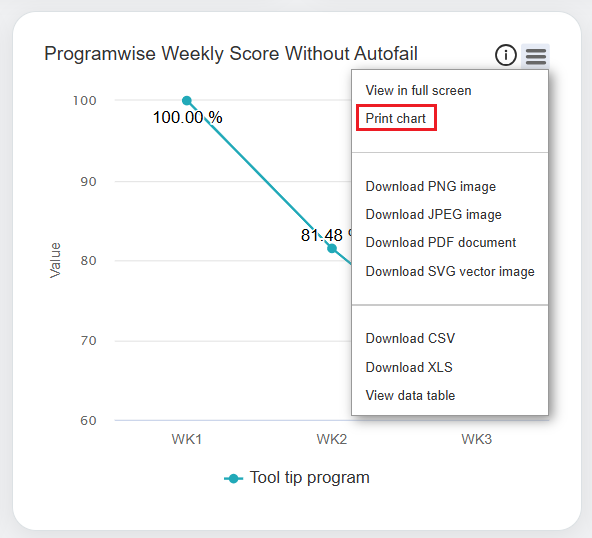 VP can print the chart and save it in their local system as well. To do so, click on the Chart Context Menu