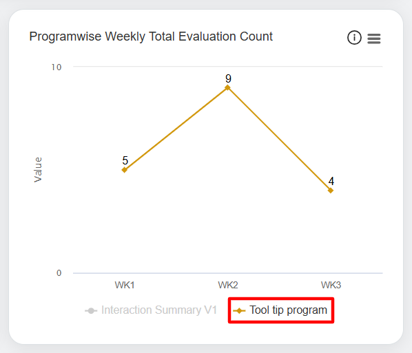 Displays weekly data for each program: These statistics are displayed in the Line Chart format. On these charts, the weekly score is displayed for each program.