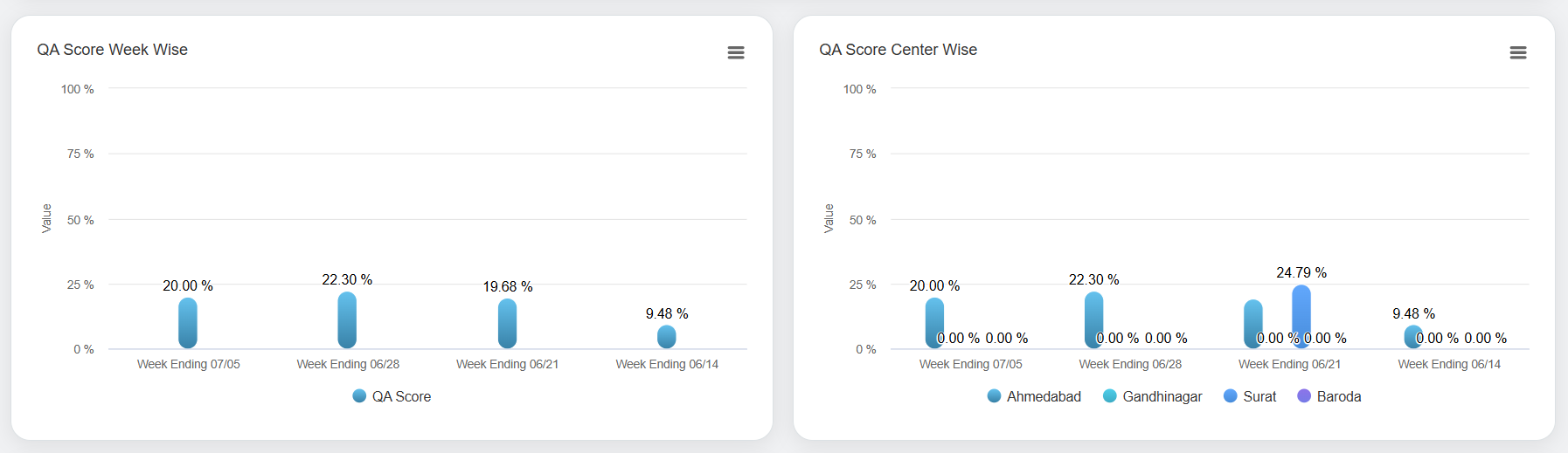 QA Score Week Wise and QA Score Center Wise