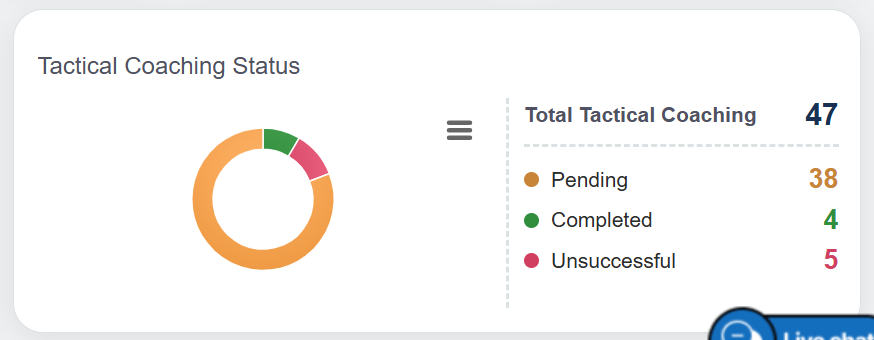 Tactical coaching status statistics are displayed in the Pie Chart format. On this chart, the user can view the number of completed, pending, and unsuccessful coaching status as shown below: