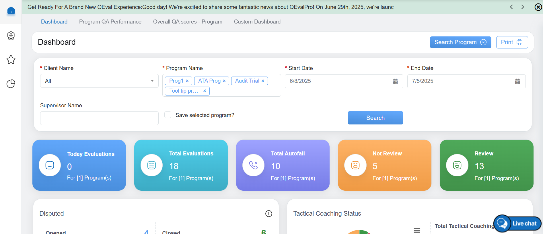 - Overall QA Scores – Program