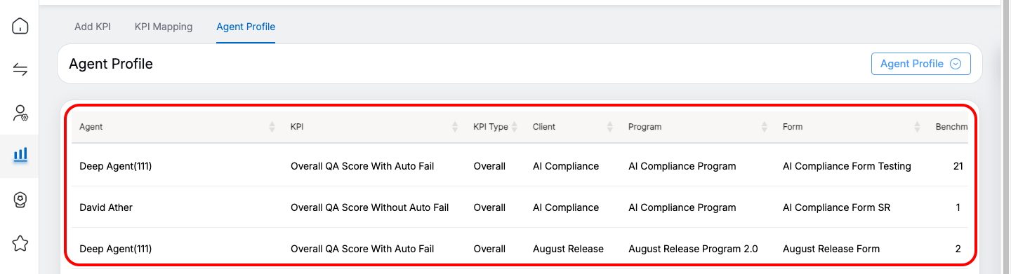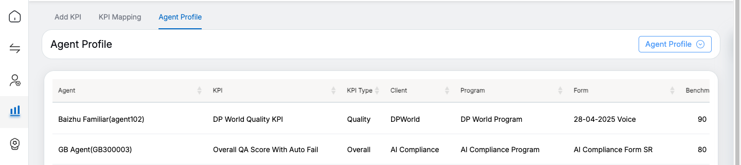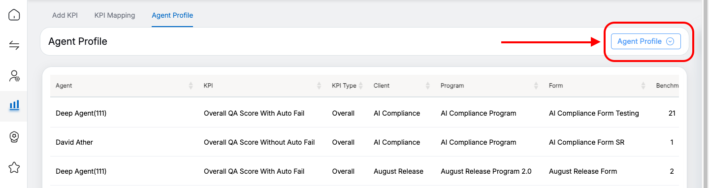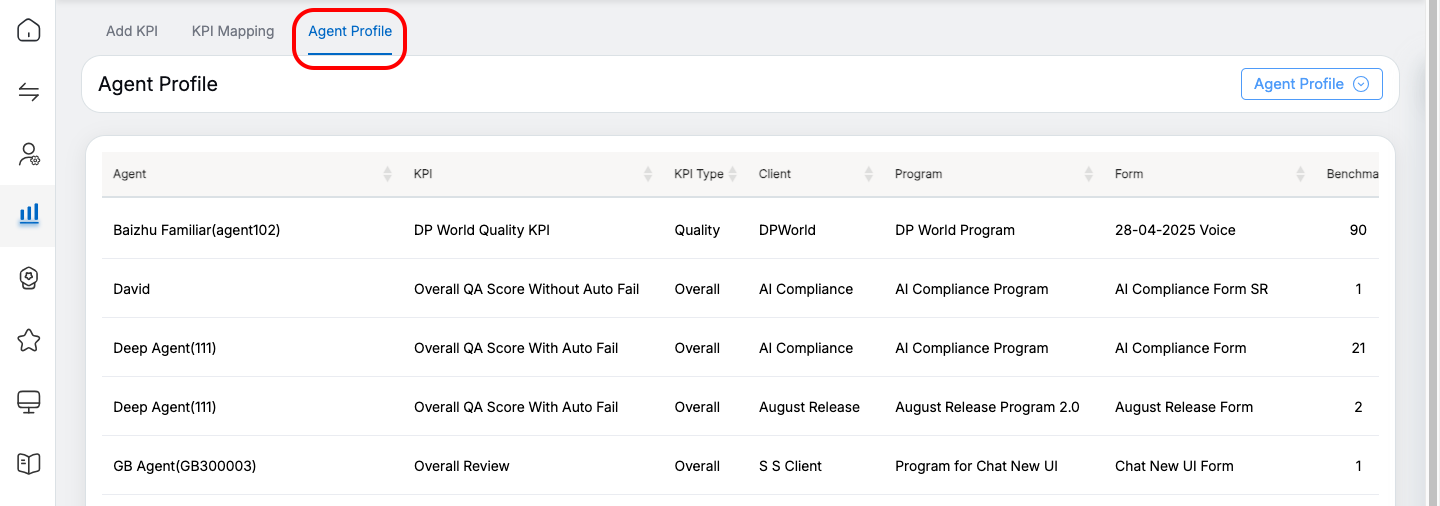 To access this feature, select the KPI menu and select the Agent Profile tab.