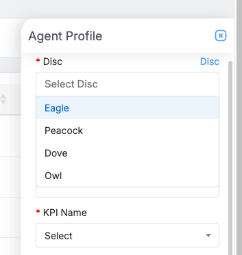 DISC stands for Dominance, Influence, Steadiness, and Compliance which are the personality types. Select the DISC option from the dropdown field – Eagle, Peacock, Dove, or Owl.
