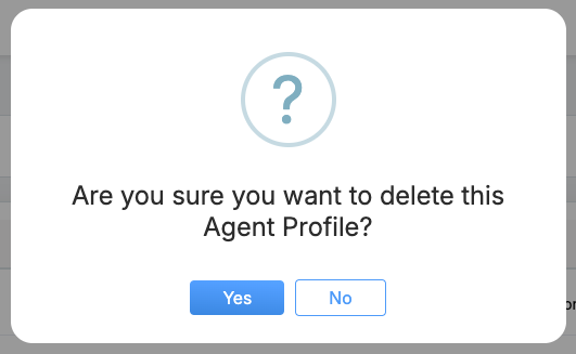 icon displayed under the Action column to delete the agent profile and the following confirmatory message as shown below: