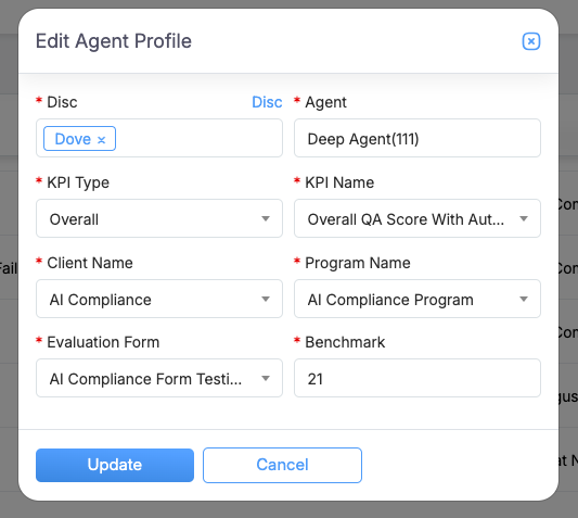 icon displayed under the Action column to edit a particular agent profile and the Edit Agent Profile window will be displayed as shown below: