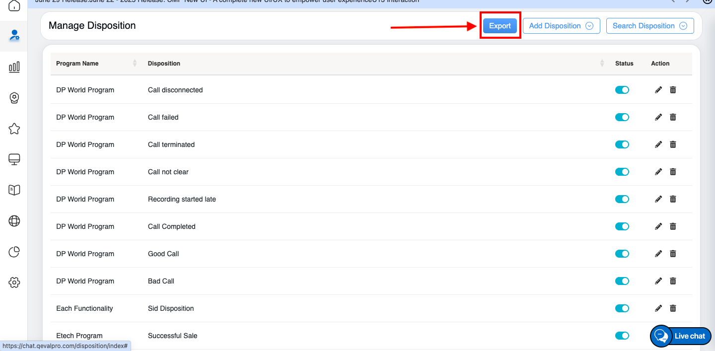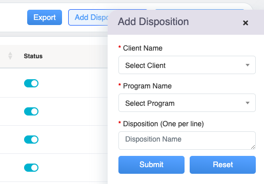 The Disposition is a feature that is used by the agent to dispose the call. QA Verifier can select the disposition from the dropdown list in the evaluation. The client can filter the report based on disposition to get the outcome of the agent as well as getting business outcome. It also allows the client can also track and monitor call outcomes, gain valuable intelligence that can be used to optimize the team’s process. The authorized users can seamlessly add new dispositions, effortlessly modify, search, and delete the existing disposition.