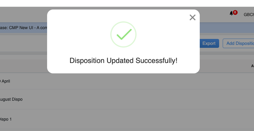 After updating the disposition, an acknowledgment message will be displayed as shown below: