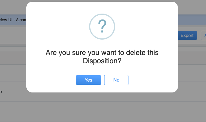 A confirmation message will be displayed on the same page. Click on Yes button to delete the selected disposition or click on No button to discard this process.