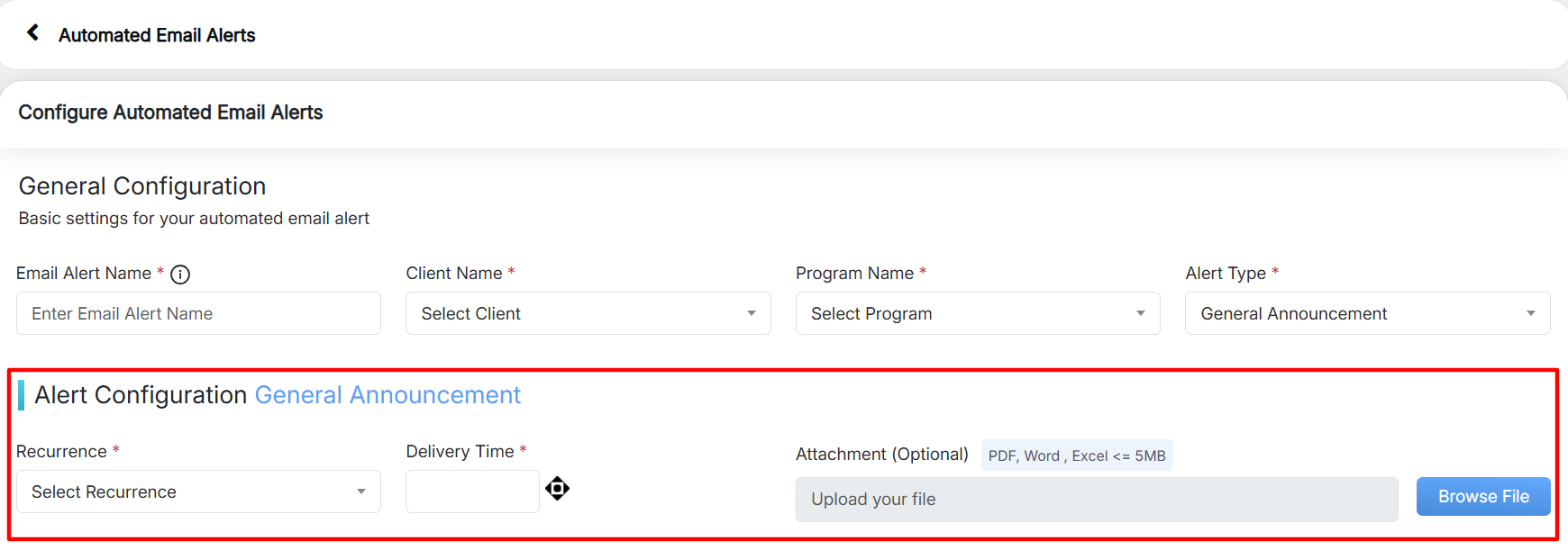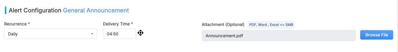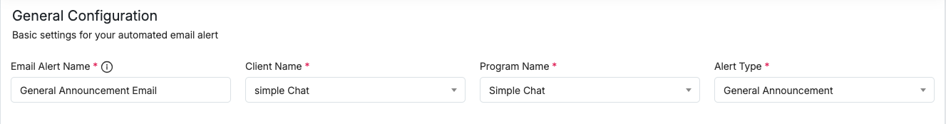 When the alert type is selected, as General Announcement, the alert configuration is as described below.
