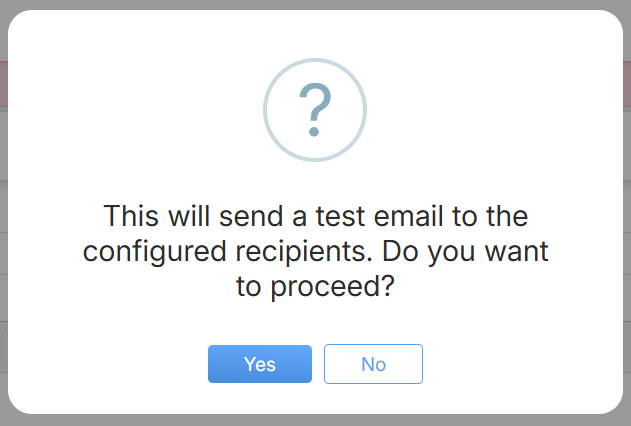 A new popup windows displays, that asks the user whether they would like to send the test email to the configured recipients. Click on the button Yes.