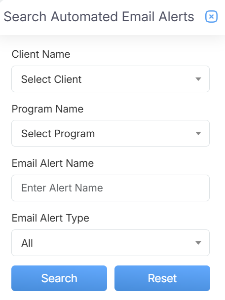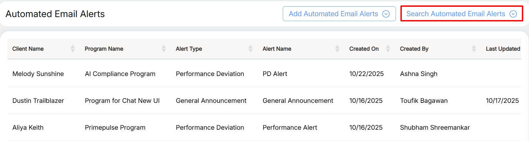 To search the email alerts, click on the Search Automated Email Alerts button.