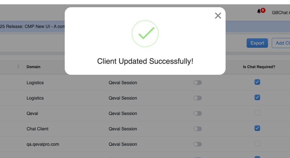 An acknowledgment message will be displayed, and the specific client will be permanently deleted from the QEval system.