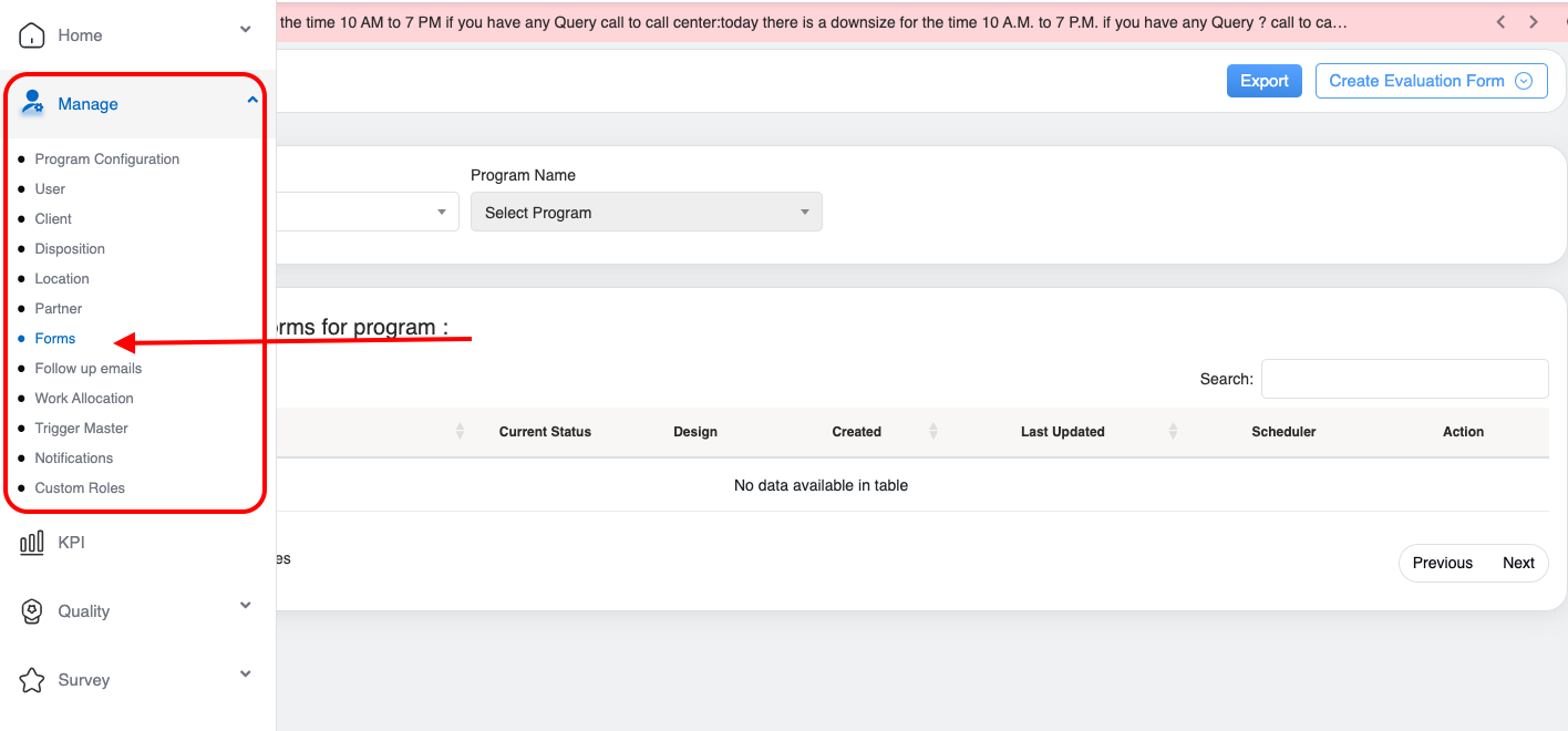 QEval includes evaluation forms that help QA managers to monitor and evaluate the performance of agents for handling the calls. The forms page enables one to create, edit, delete, activate, deactivate or preview the form.