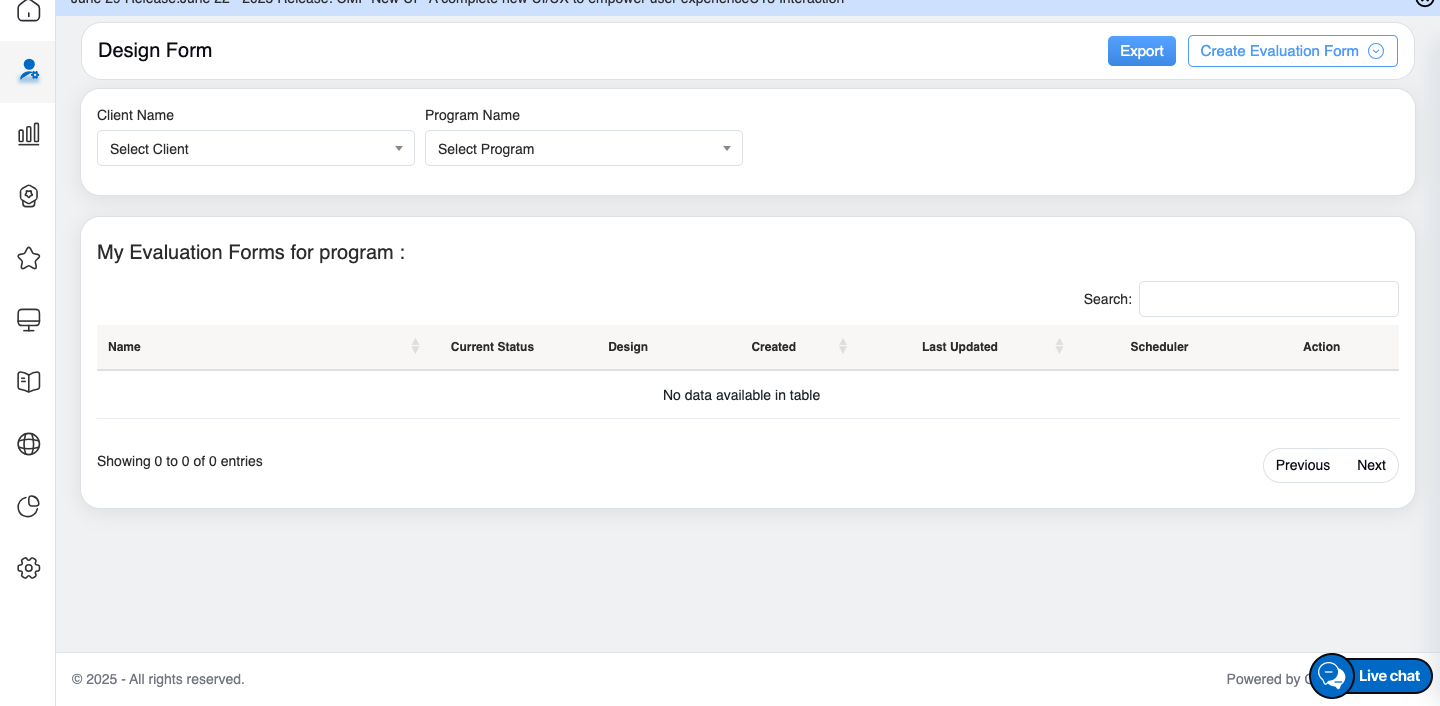 To know about creating a new Evaluation Form for any program, refer to Create Evaluation Form.