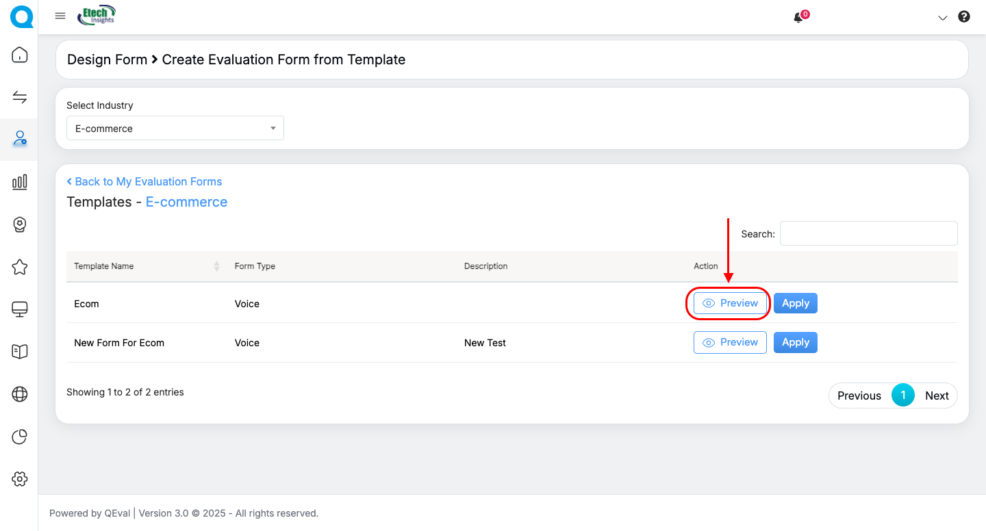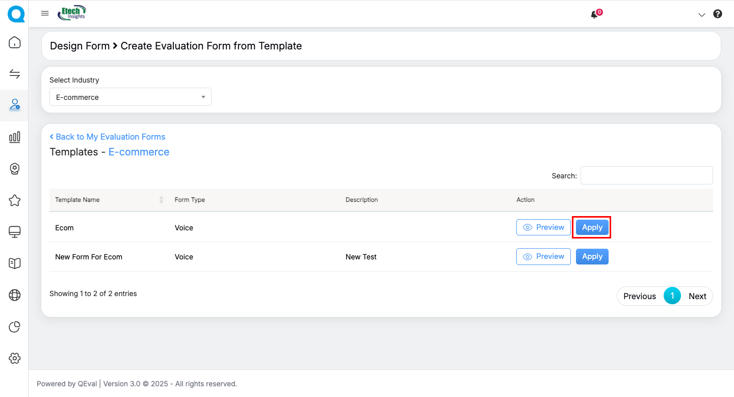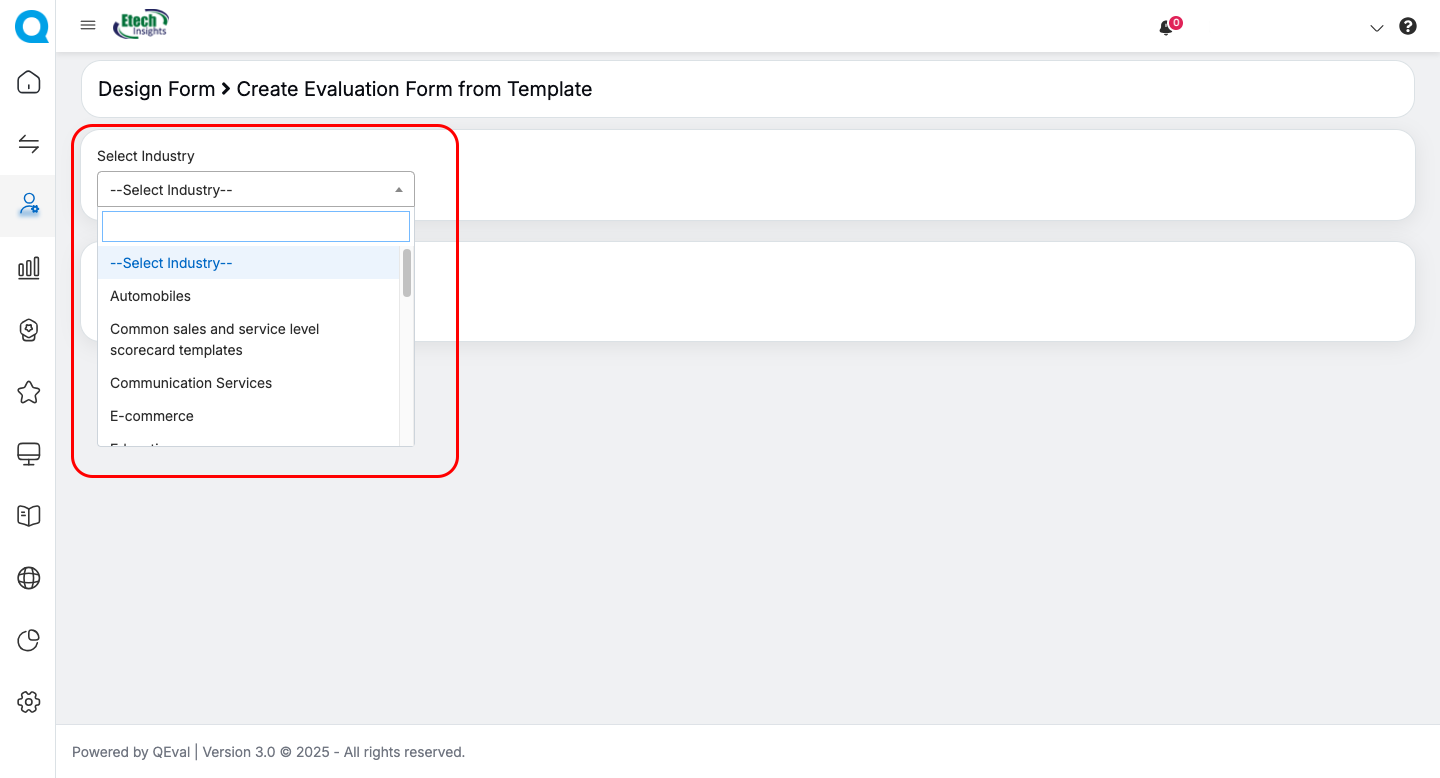 QEval now includes a simple and efficient way to build evaluation forms using ready-made templates. This feature is especially useful for organizations that follow industry-specific evaluation standards or want a quick starting point.