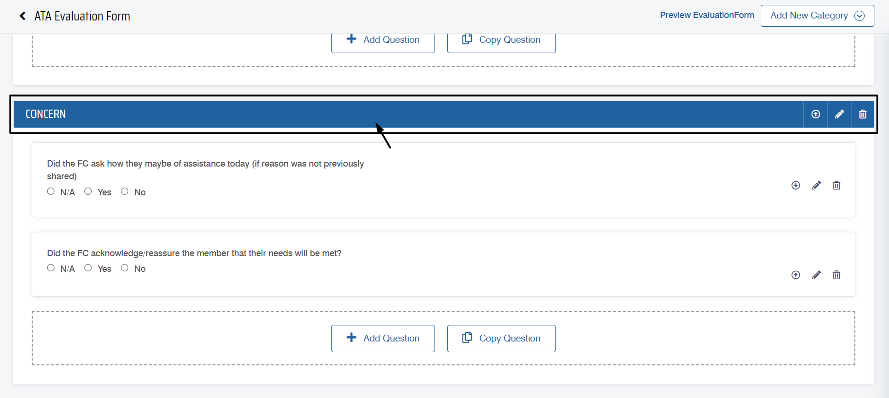 This feature allows creating a new category by copying some or all the parameters from the existing evaluation form.