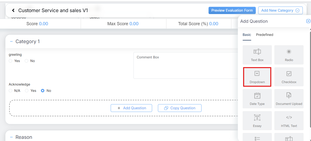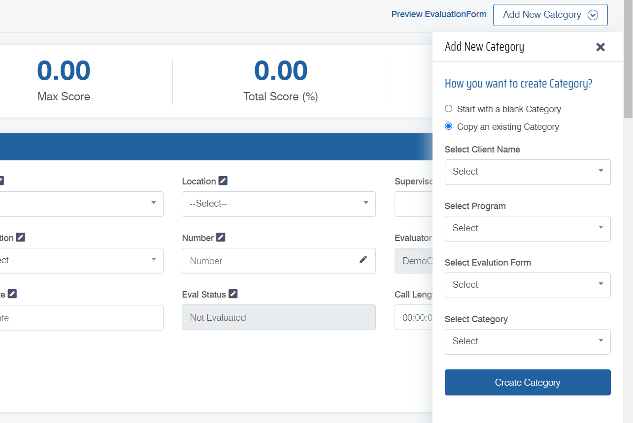 - Select the Evaluation Form from the dropdown list whose category needs to be copied.