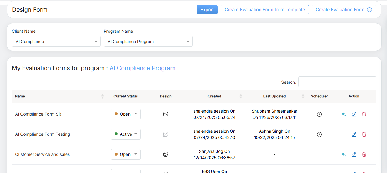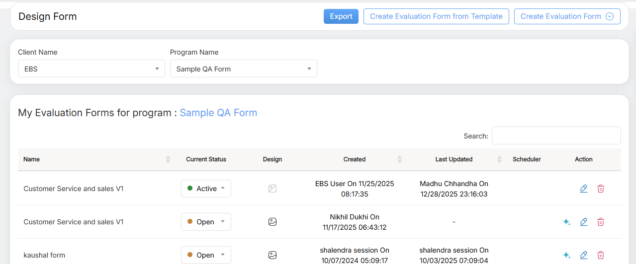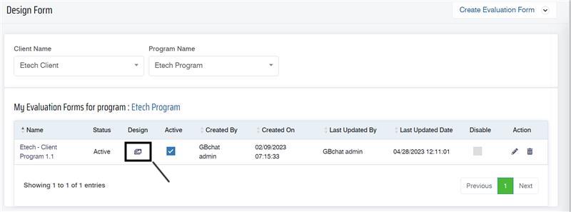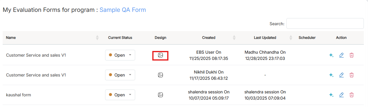 Click on the Design icon displayed under the Design column displayed on the Design Form page to view the design form page.