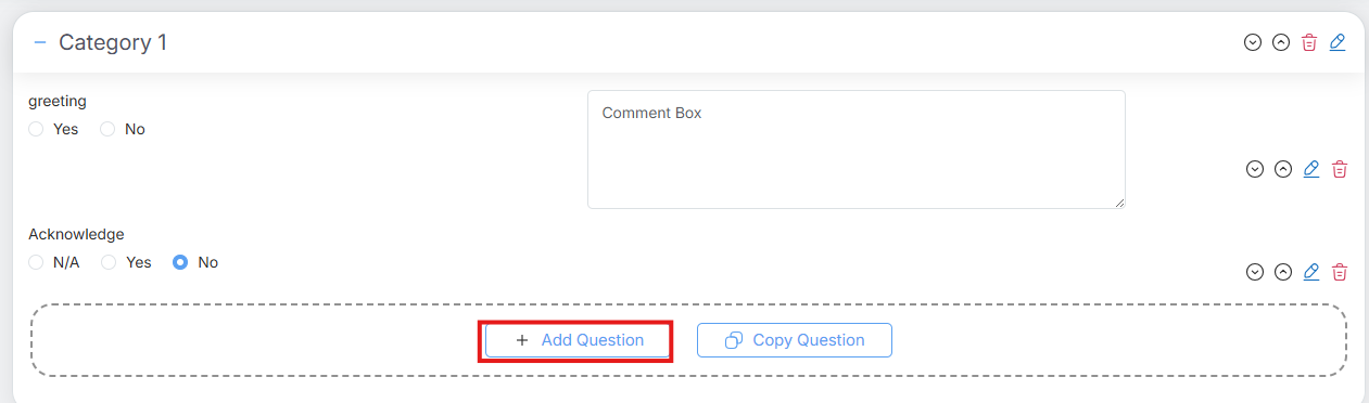 - The form displays all the questions which are required to be added to the category. Now, to add more questions to the form one needs to create a new category.