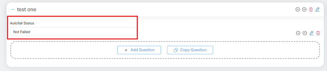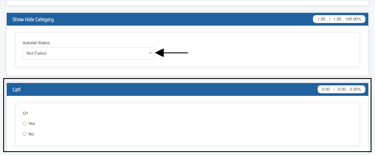 With reference to the above screen, when the Question is selected as Autofail Status and the Choice is selected as Not Failed, that specific category, (here it is Cat1) will be displayed as shown below: